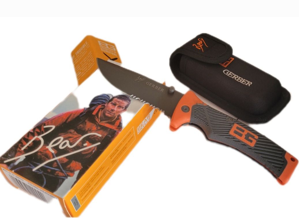 O Canivete Gerber BG113 Bear Grylls, possui uma lâmina de alto teor de carbono, ideal para segurar o fio e cortar cordas resistente.